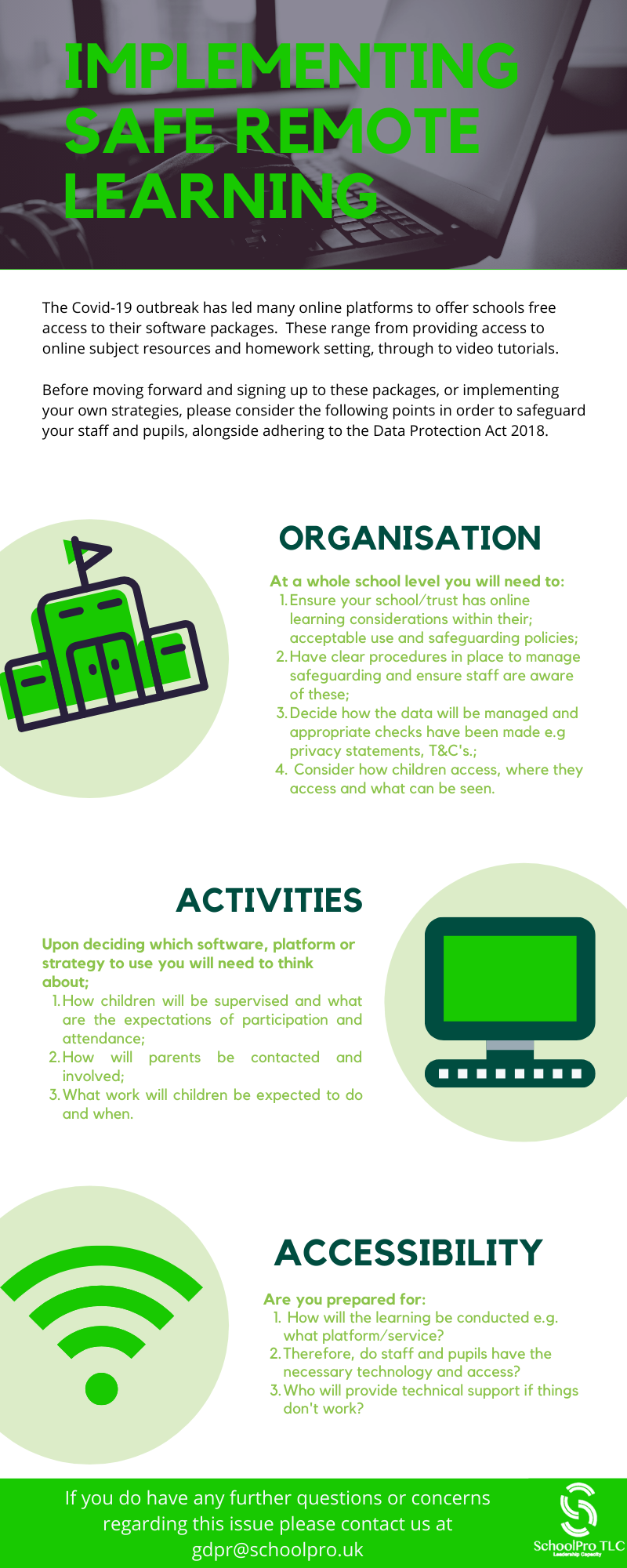 - We will still be offering guidance and support in the event of data breaches and Subject Access Requests.