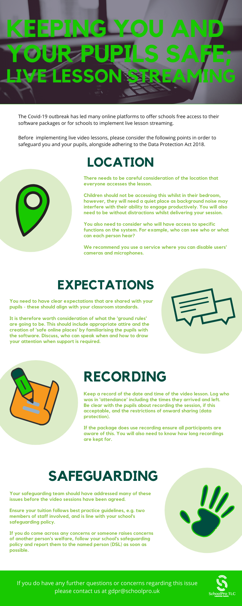 Keeping You and Your Pupils Safe; Live Lesson Streaming