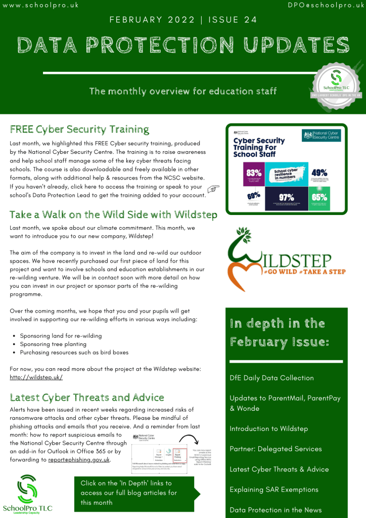 And, as always, if you have any further questions about the topics below, or if you would like to book your next visit from us, either online using video conferencing or onsite now many schools are accepting visitors, please get in touch via our new email address DPO@schoolpro.uk