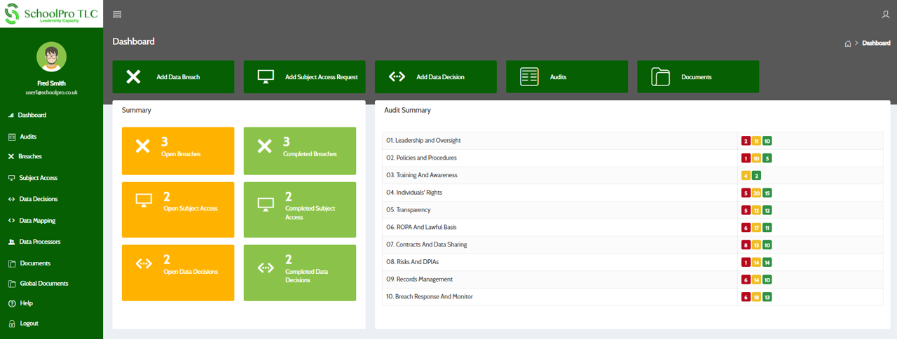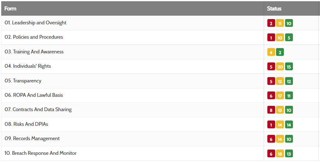 This tool has been in the form of a spreadsheet up to now. The new portal has the tracker built in which gives a live and up-to-date assessment and action plan which will reflect the audits undertaken by us as your DPO and highlight the work that is being done regarding your Data Protection accountability and compliance.