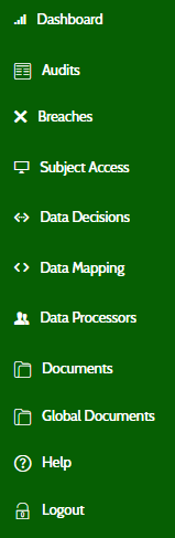 When you first open the new app, you will be greeted with this screen. From here, the buttons across the top will allow you to quickly log breaches, SARs or Data Decisions, or navigate straight to your audits (more on that later) and documents.