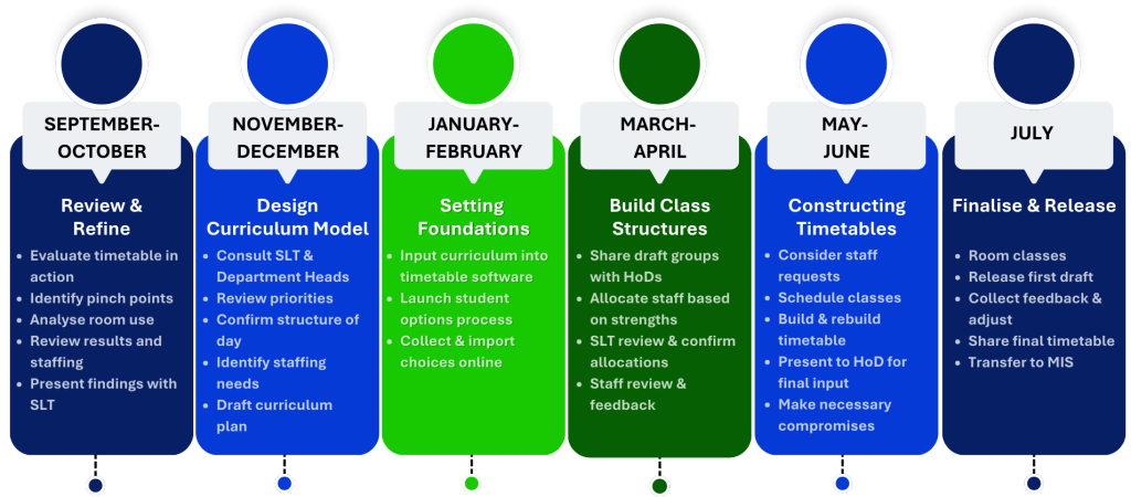 Timetabling is a year-round task, not just a summer exercise. It requires careful planning, strategic thinking, and clear communication at every stage.